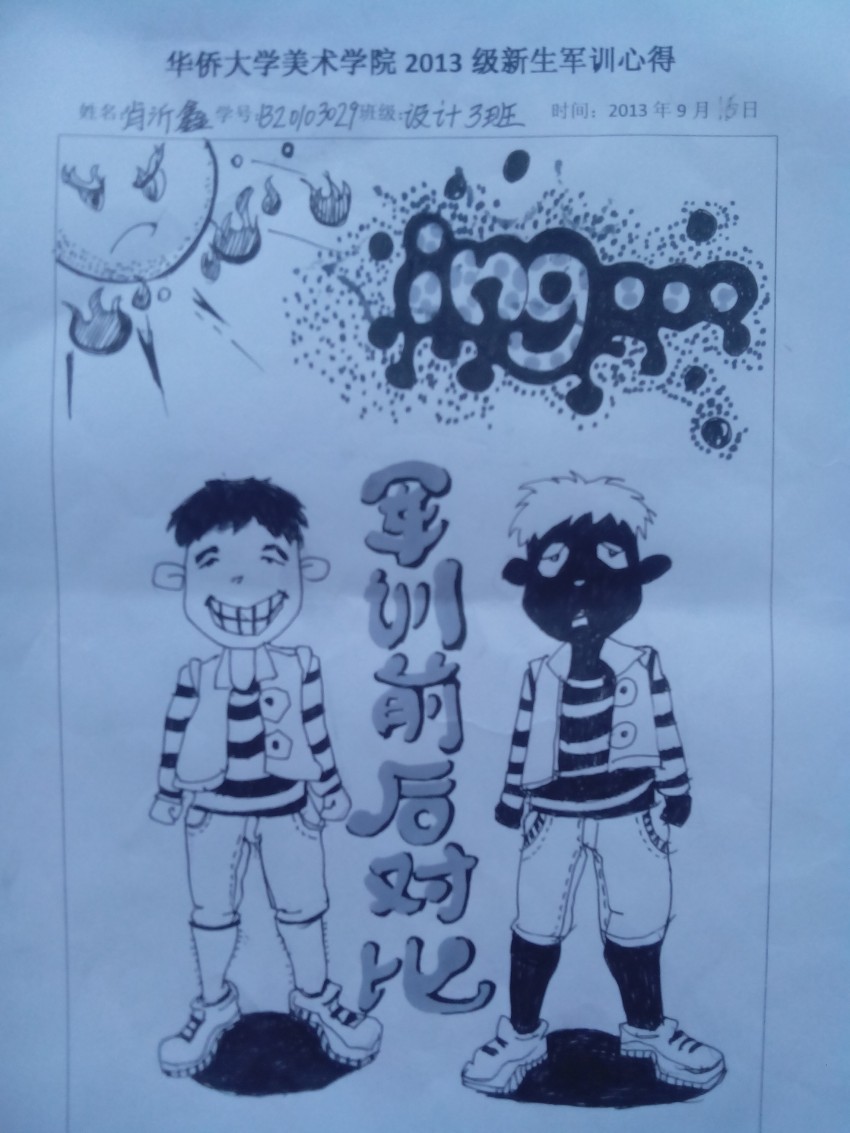 据悉,继美术学院2012年学生卖萌军训心得在网络上走红以后,今年很多2013级的新生在原基础上创新学习,不仅数量上多,而且表达的军训生活也是面面俱到。据美术学院党委书记吕少蓬介绍,美术学院将会把图文并茂的军训心得装订成册送给所在连队的承训教官以作纪念,也会将学生们的心得封入材料袋,在大学毕业之际返还给同学,以缅怀军训的美好岁月。(通讯员/葛卫遥)